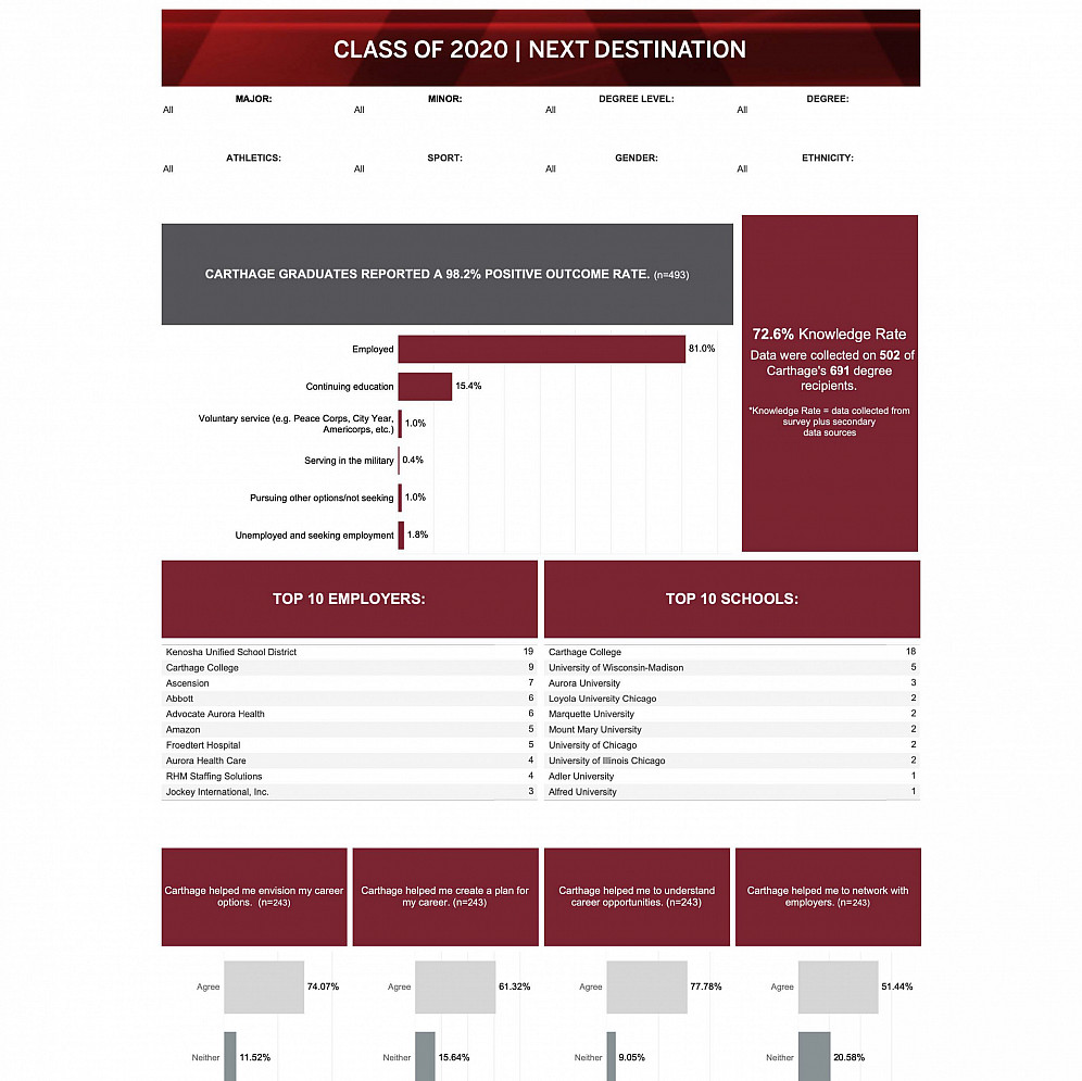 Institutional Reports Home Institutional Research Institutional Reports Offices & Services Institutional Research Consumer DataCommon Data SetInstitutional ReportsCarthage Licensure ProgramsInstitutional EffectivenessResearch ResourcesContact Us Click on one of the reports below to download and view. Majors & Minors Fall 2023 Majors Fall 2023 Minors Retention and Graduation Rates First-to-Second Year Retention 4-Year Graduation Rate Facts & Figures 2022 Student Profile Master Program Graduation Rates Graduation/Retention 2021-22 2021 Facts & Figures 2021 Student Profile Graduation/Retention 2020-21 2020 Facts & Figures 2020 Student Profile Graduation/Retention 2019-20 2020 Outcomes Survey 2019 Facts & Figures 2019 Student Profile Graduation/Retention 2018-19 2019 Outcomes Survey 2018 Facts & Figures 2018 Student Profile Graduation/Retention 2017-18 2018 Outcomes Survey 2017 Facts & Figures 2017 Student Profile Graduation/Retention 2016-17 2017 Outcomes Survey›